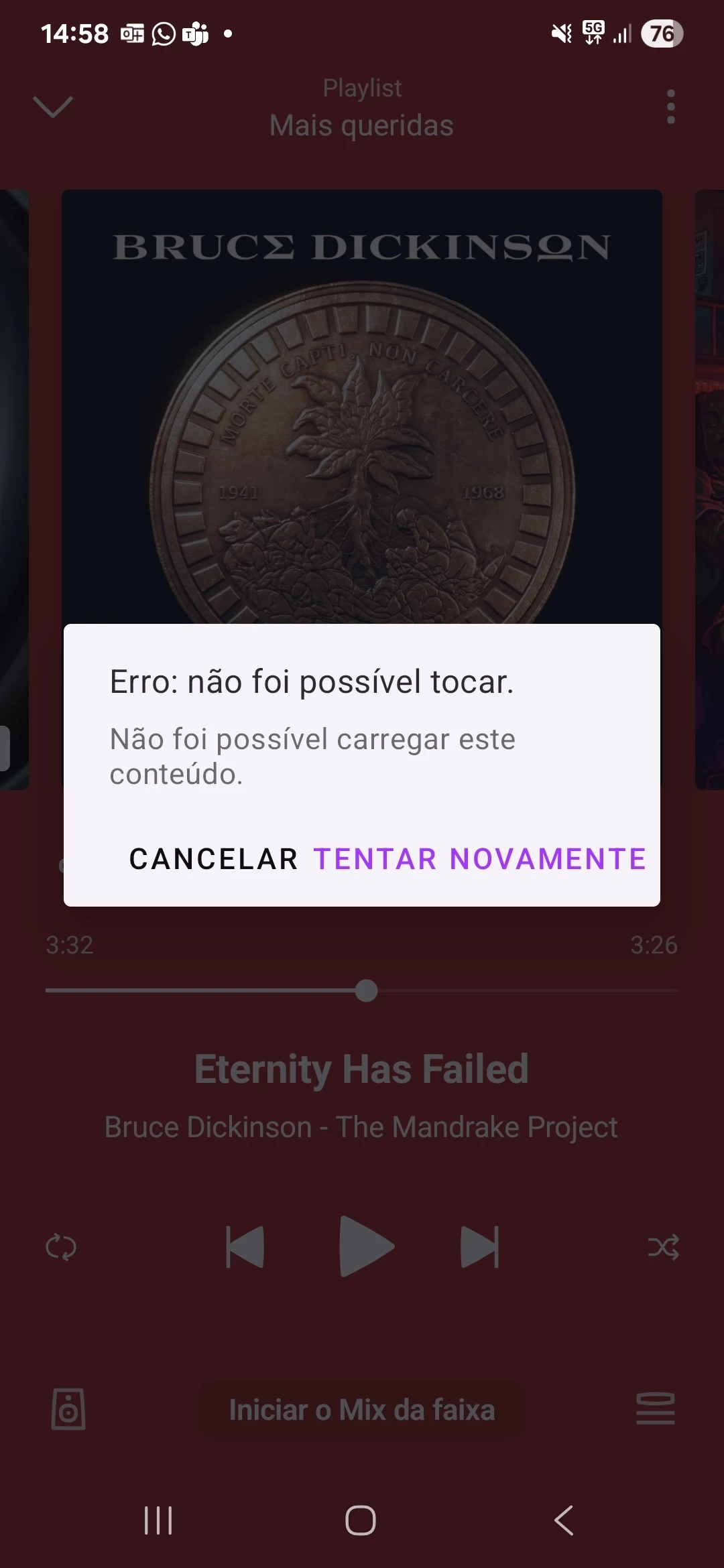 Até poucos dias atrás, Deezer vinha funcionando normalmente, mas agora toca uma música e dá erro, dizendo que não foi possível carregar conteúdo. O aplicativo está atualizado, já forcei parada, limpei cache, reiniciei o celular, nada resolveu. Quero o Deezer funcionando corretamente como antes.