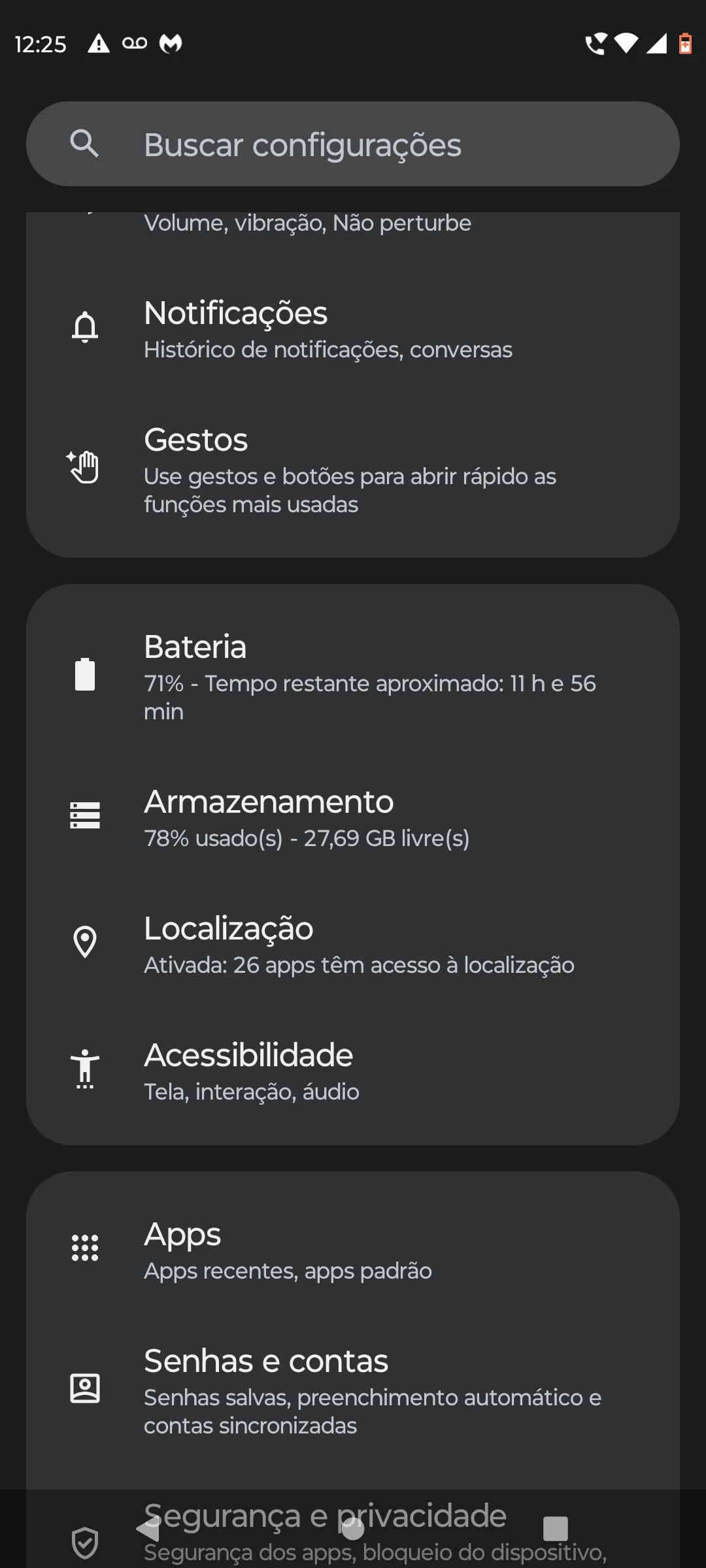 • Pelo menos 20% do armazenamento total deve estar livre para o celular funcionar bem.