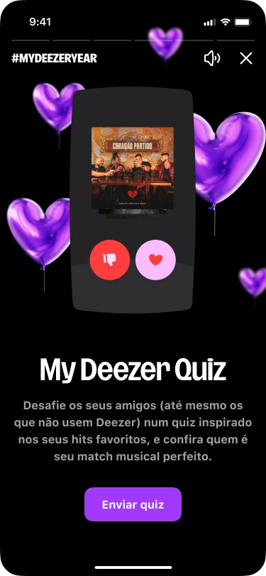 Neste ano, My Deezer Year não é apenas um recap — é uma comédia romântica completa, estrelando VOCÊ. Música e romcom têm a mesma magia: tensão, alívio e grandes emoções. E a Deezer está aqui como sua narradora charmosa, guiando você por cada reviravolta.