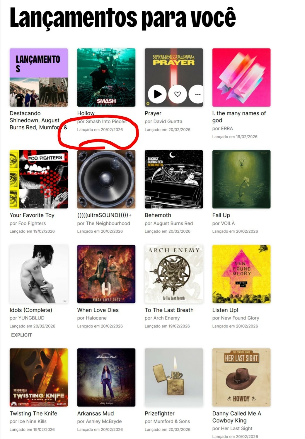 Eu já tinha sugerido isso antes e continua sem na versão mobile. Mas, pra mim seria super interessante colocar a data do lançamento embaixo dos álbuns, singles etc. Na aba de lançamentos para você