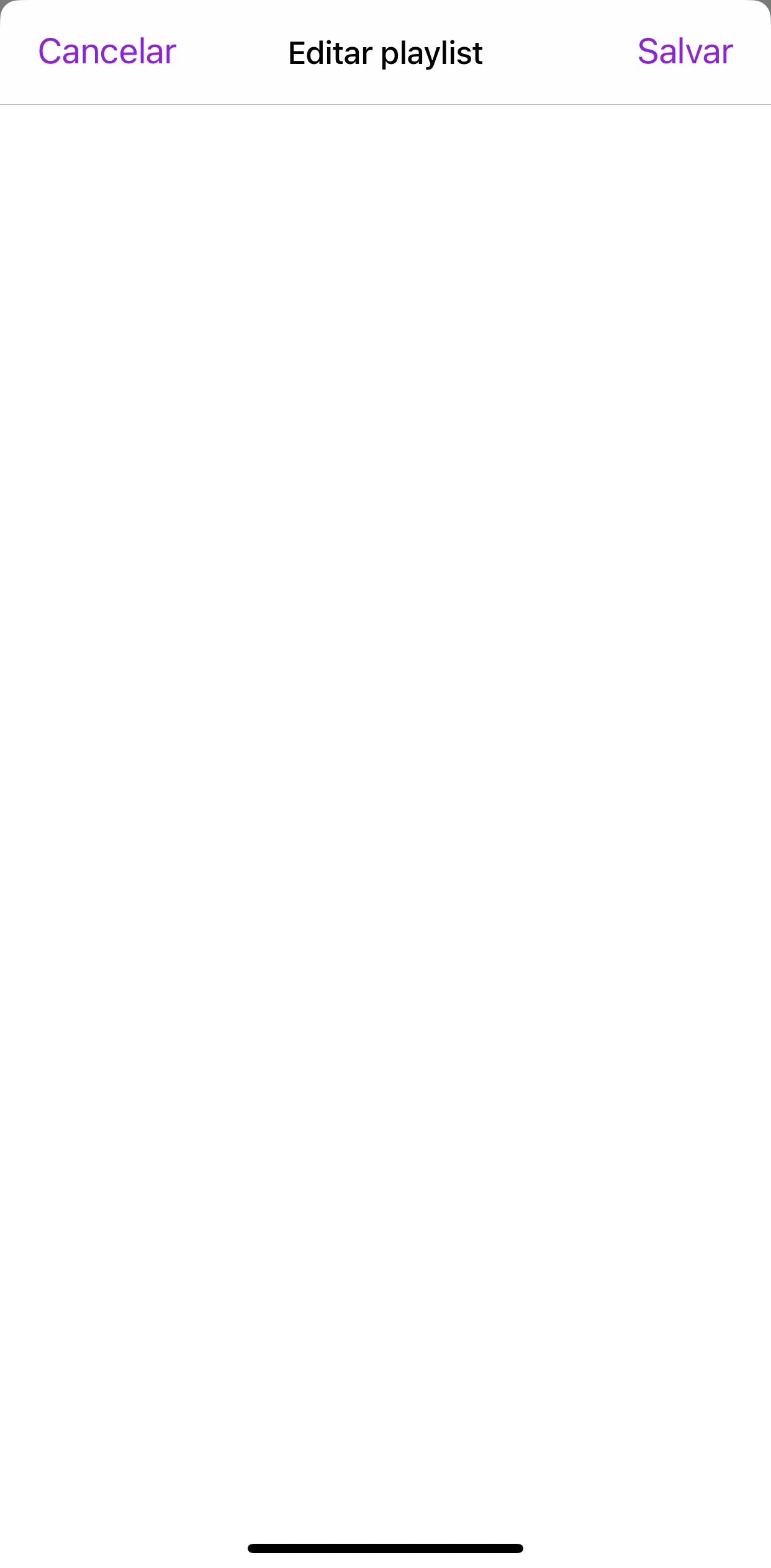diferente de outras reclamações aqui, a minha é diferente. sempre que eu tento editar a minha playlist, ela fica branca e não funciona se eu for muito pra baixo, mais ou menos umas 100 musicas. se eu tentsr subir de novo, nada acontece. é como se todas as musicas fossem apagadas da playlist, mas se eu clicar salvar nao acontece nada. isso nao acontece com outras playlists com menos musicas. tambem tentei editar em outro celular, e a mesma coisa aconteceu. por sinal, a playlist tem 319 musicas