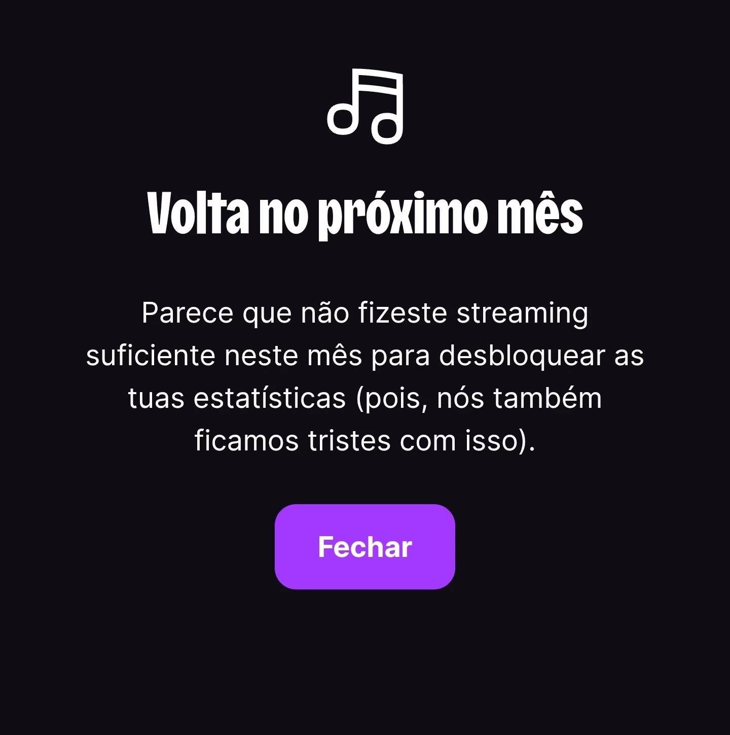 Não consigo acessar o meu deezer month de Junho. Diz que eu não tive streaming suficiente mês passado.