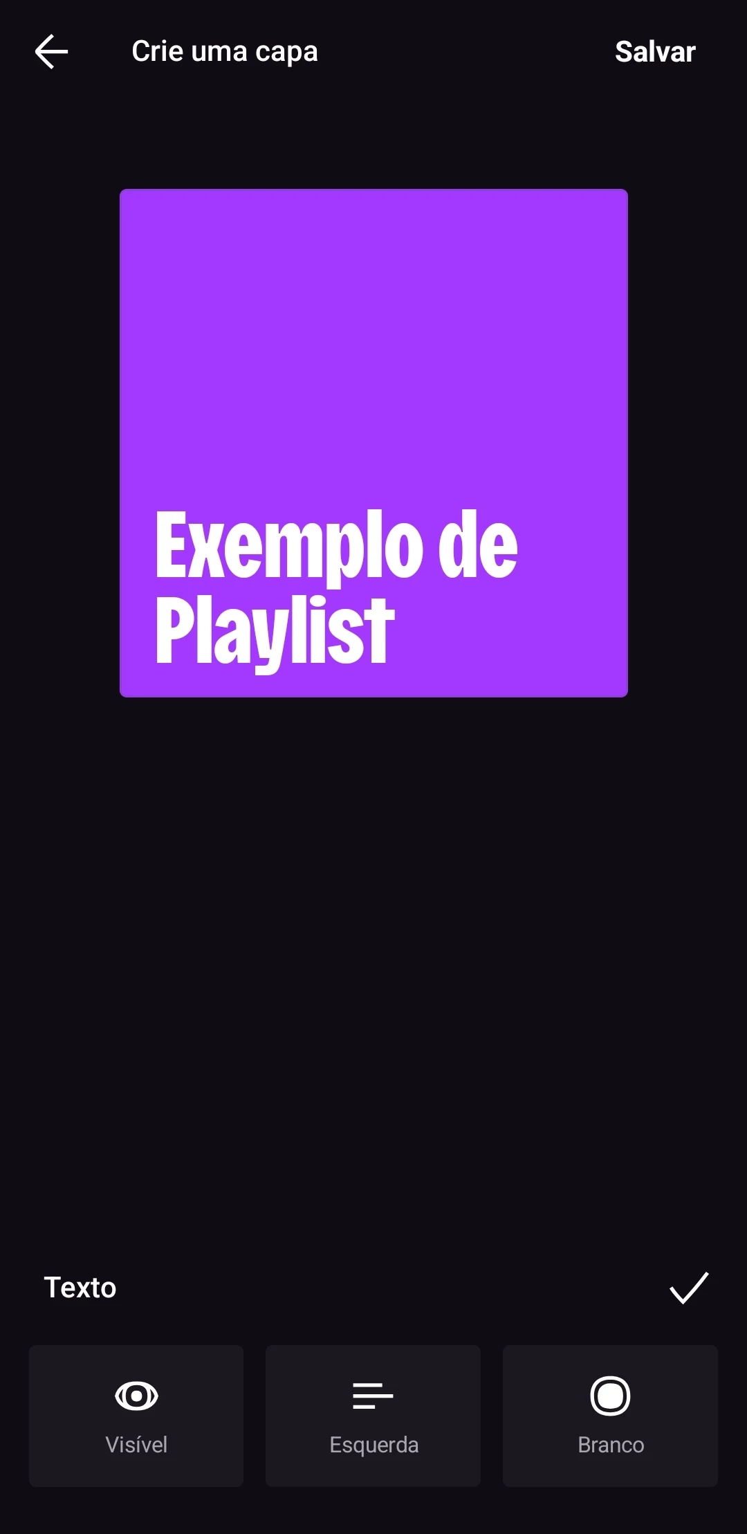 Oi ​@Fabbb nos próximos dias a Deezer vai trazer uma atualização que possibilita alterar a visibilidade do texto (nome da playlist) para torná-lo visível ou não na capa.