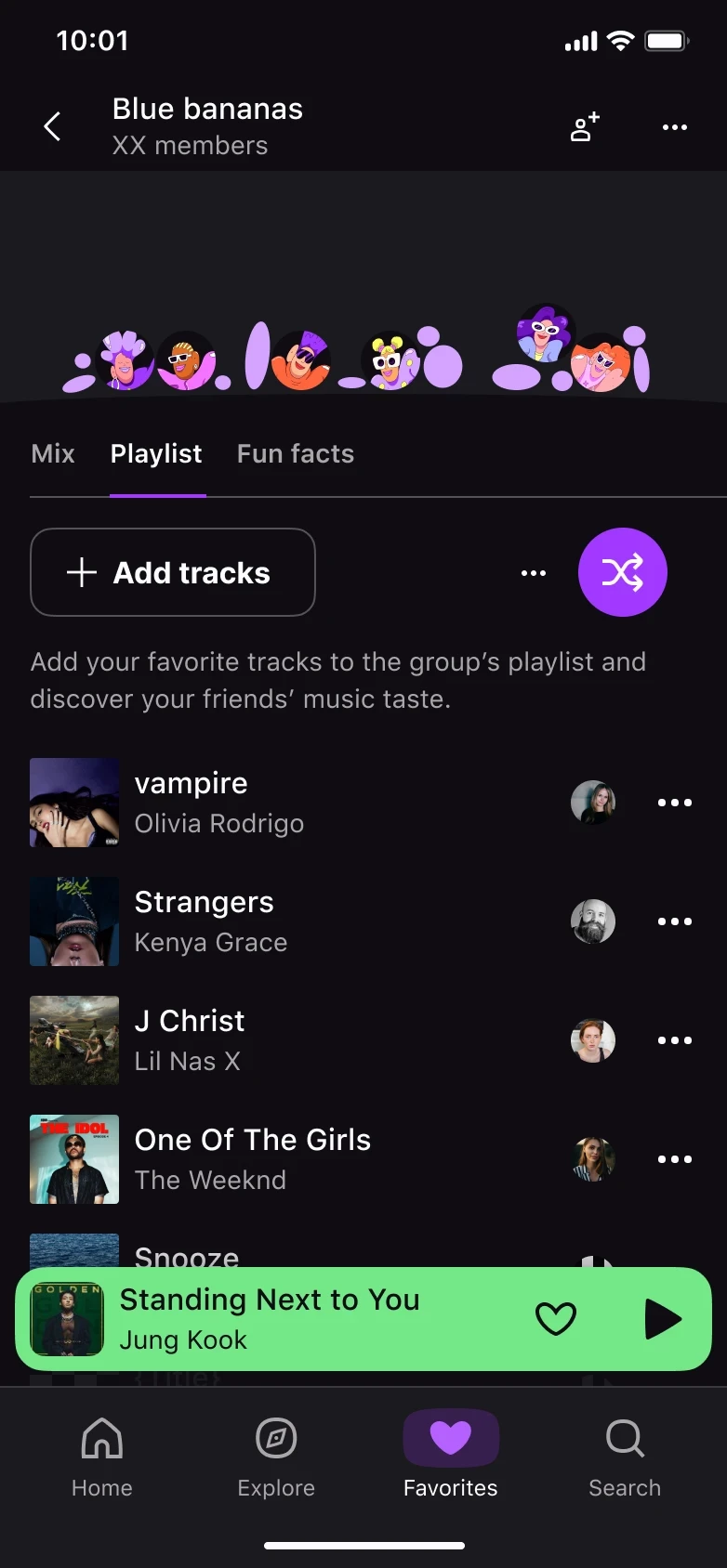 • Favoritar todas as faixas apertando nos 3 pontos de cada faixa.