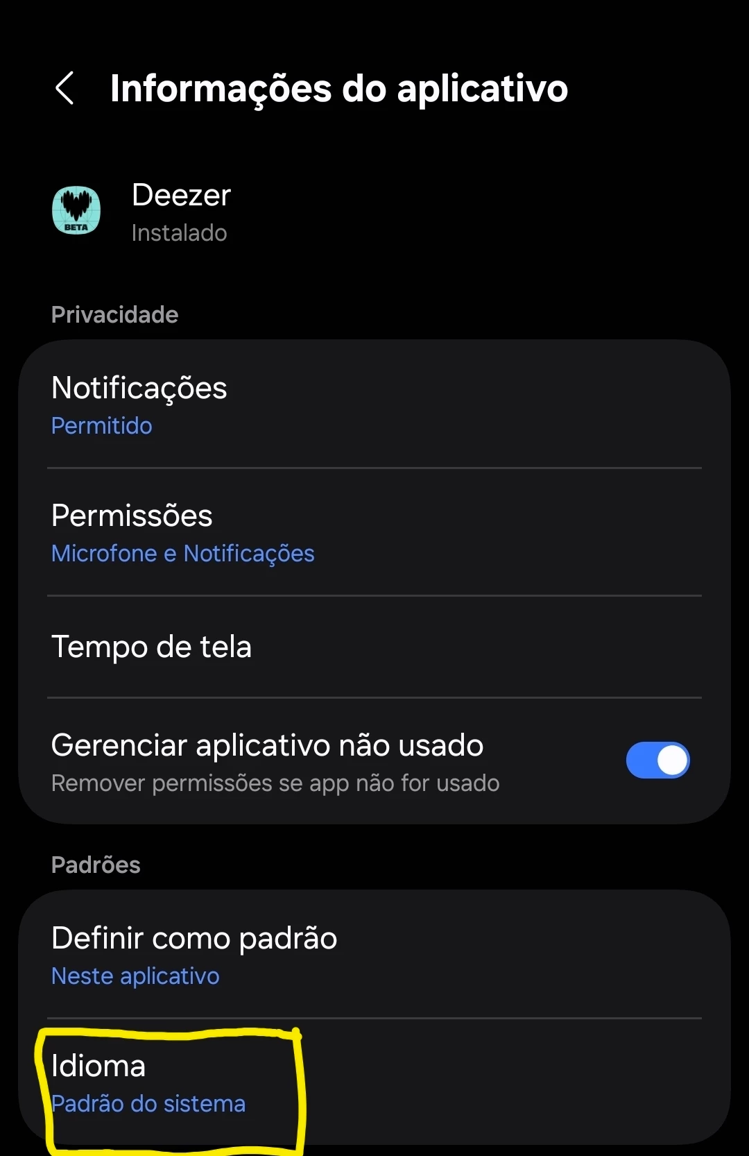 Mudar idioma do aplicativo deezer para celular. Ajuda