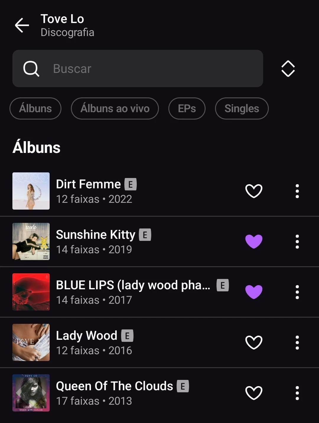 Na aba de discografia, o aplicativo está escondendo alguns álbuns e reparei que isso acontece quando o aplicativo classifica esse conteúdo como "Outras versões)