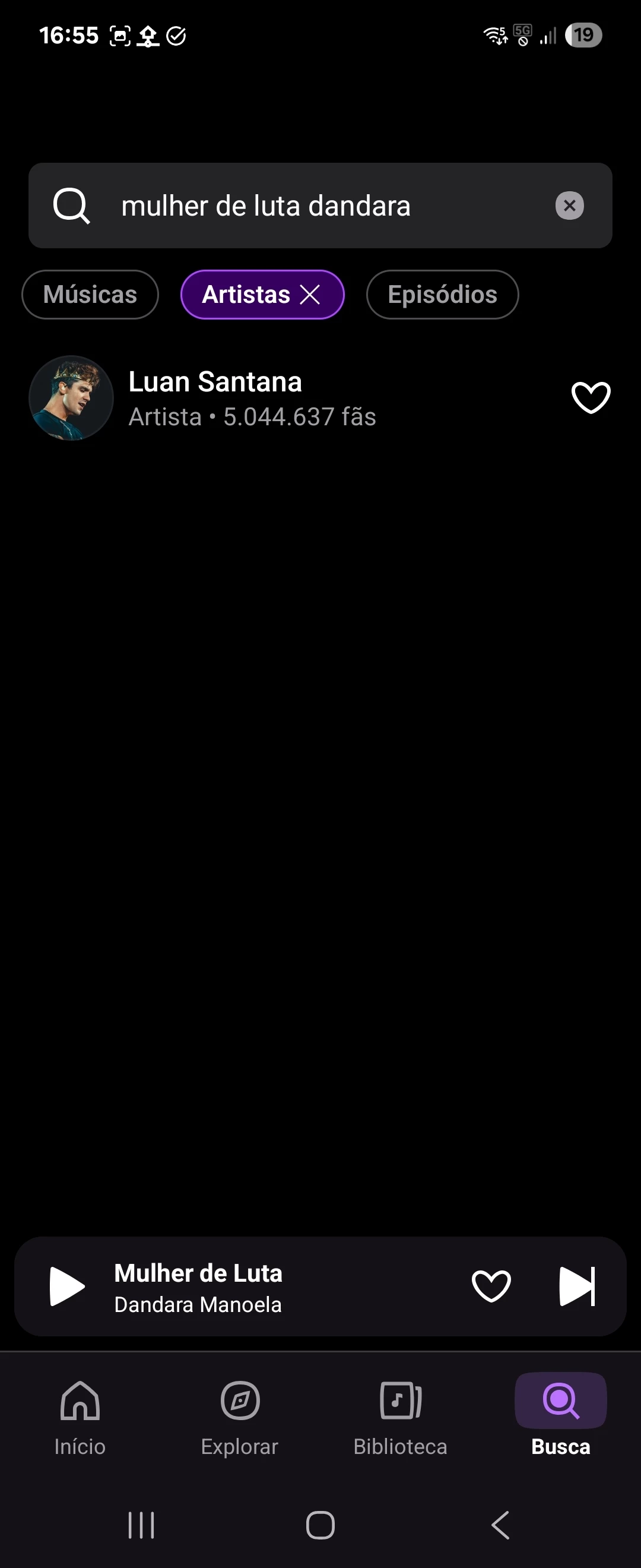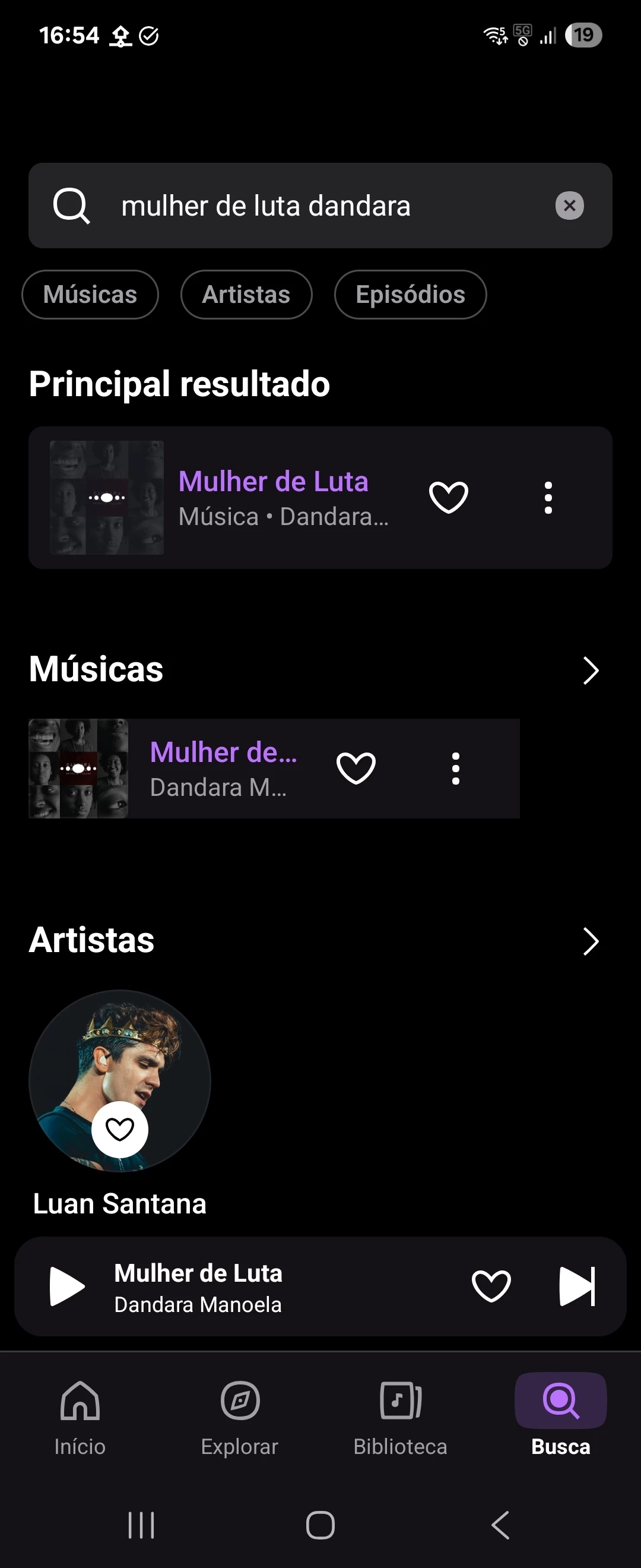 Pesquisei "mulher de luta dandara" e em artistas apareceu Luan Santana, que diabos Luan Santana tem a ver com a música, a artista, o gênero musical? Isso aí foi muita cara de pau 😂