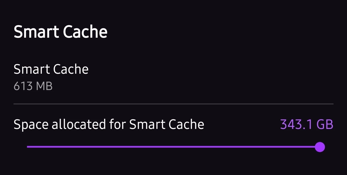 Oi ​@Hudsoon O08 no seu aplicativo, vá até as configurações > dados e armazenamento > limpe o espaço alocado para o smart cache, até ficar próximo do 0 MB, depois arraste novamente a barra até o final. Conforme abaixo: