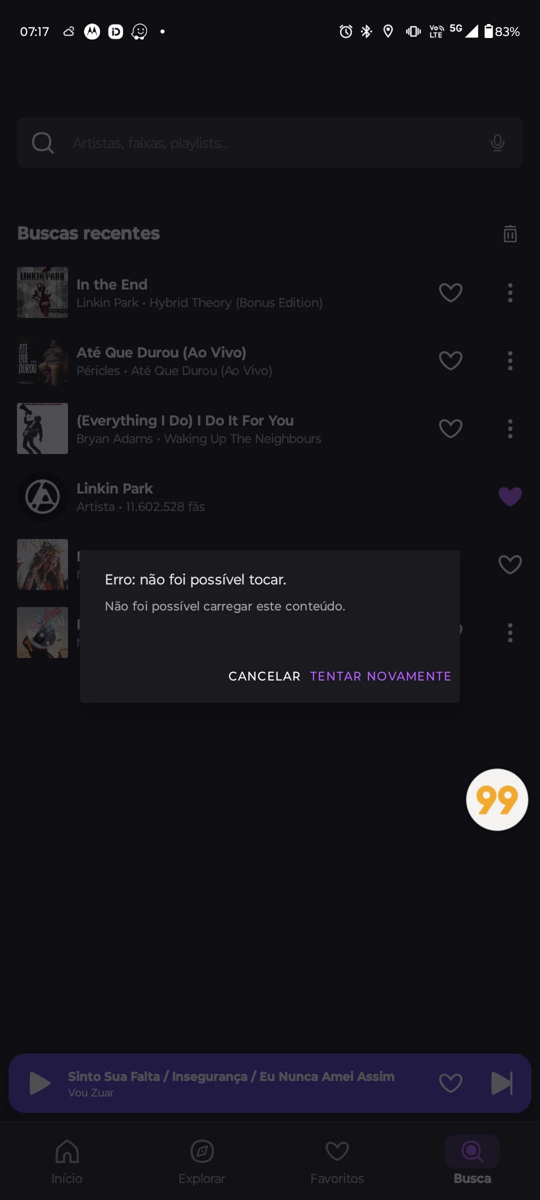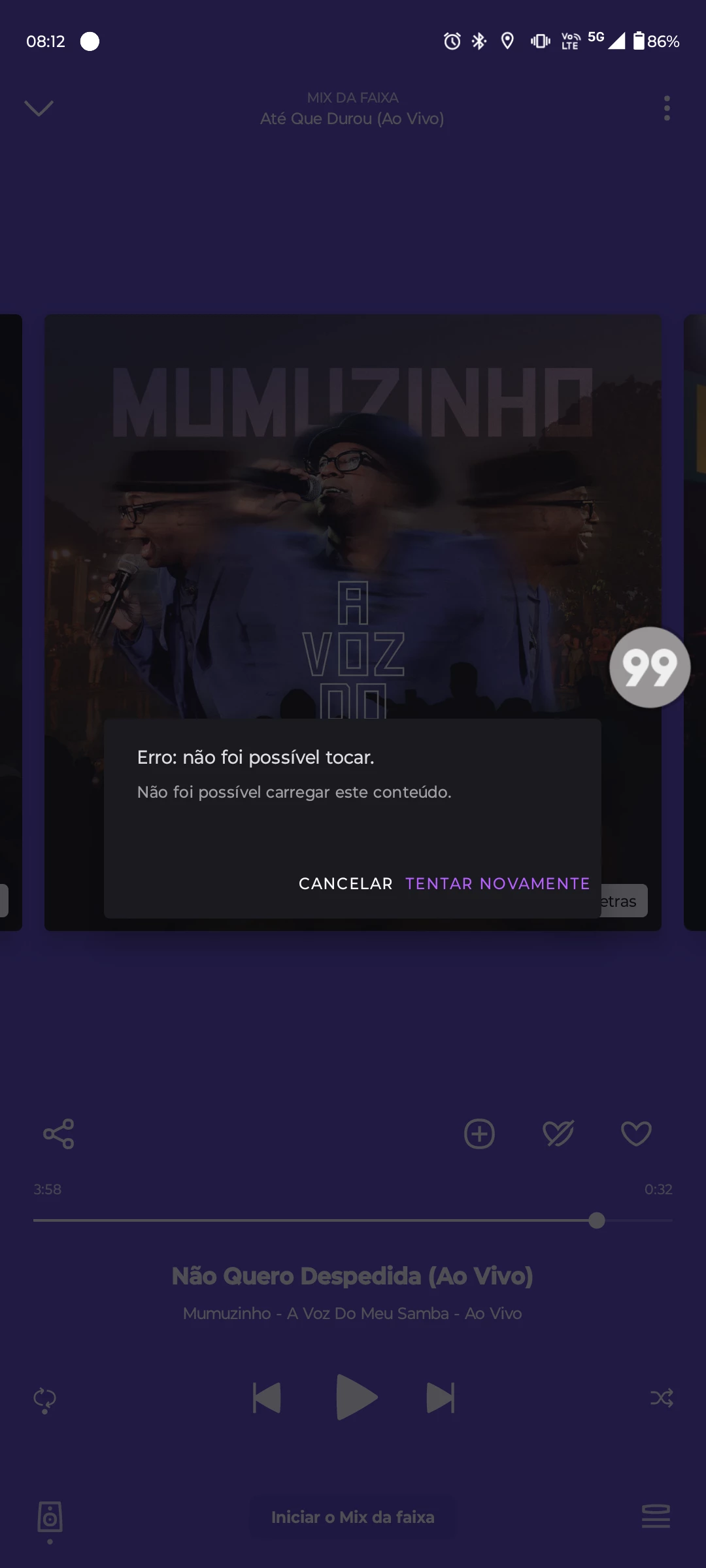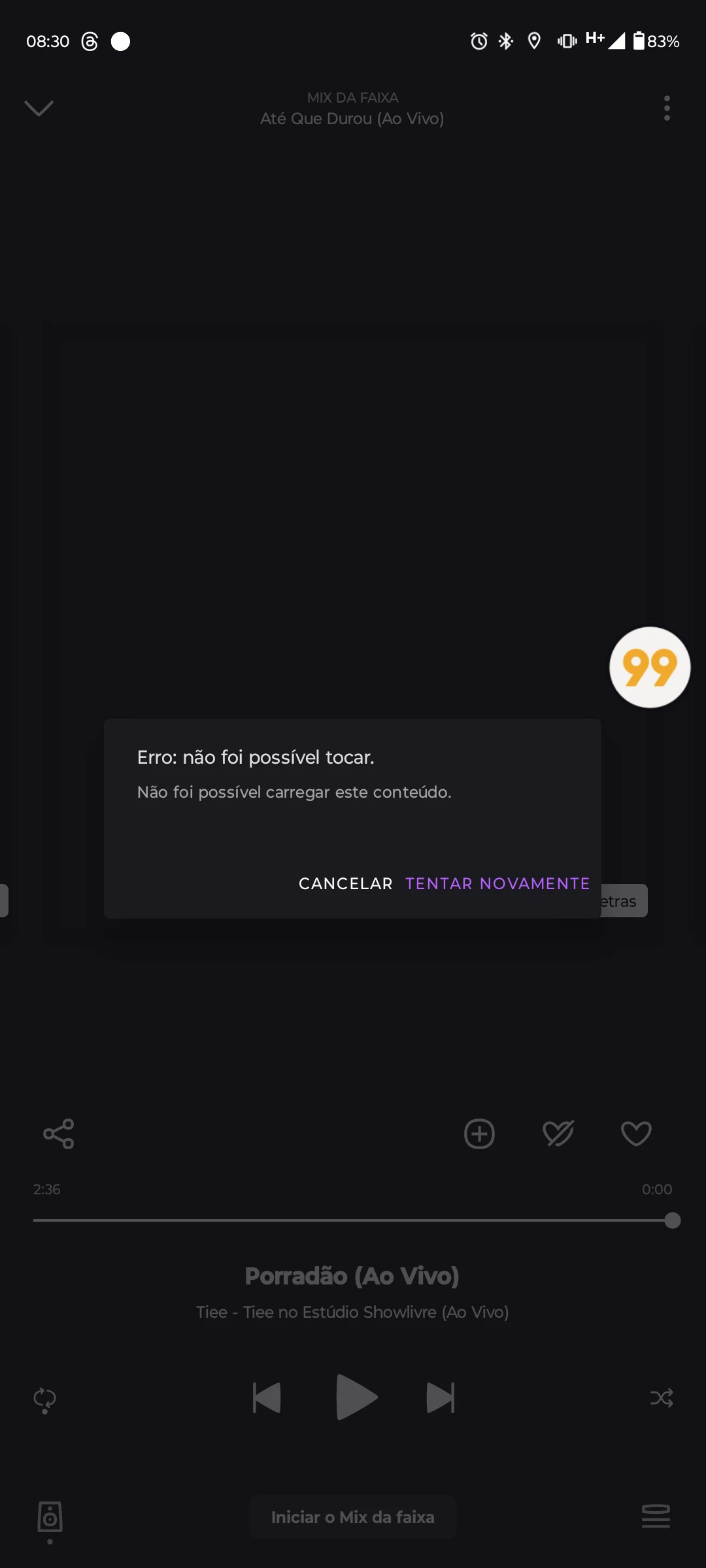 Simplesmente do nada, o app me da esse erro, e só toca depois que você aperta em "tentar novamente"