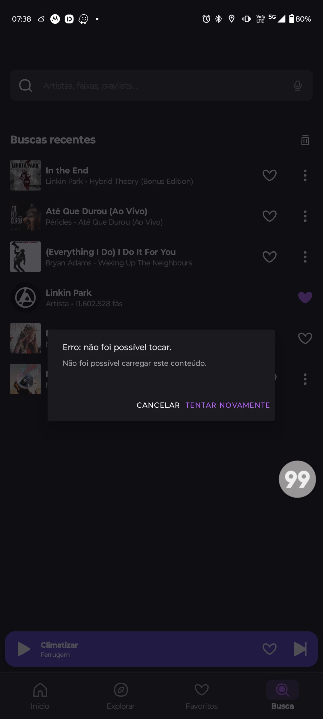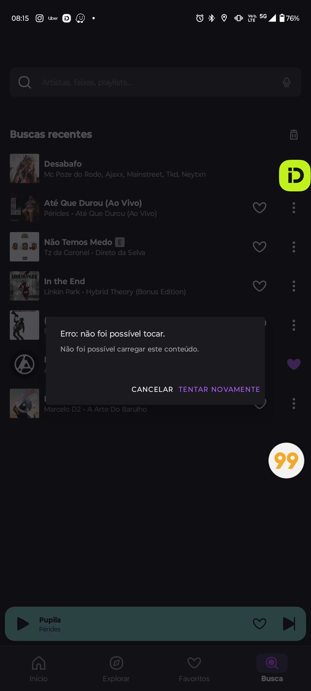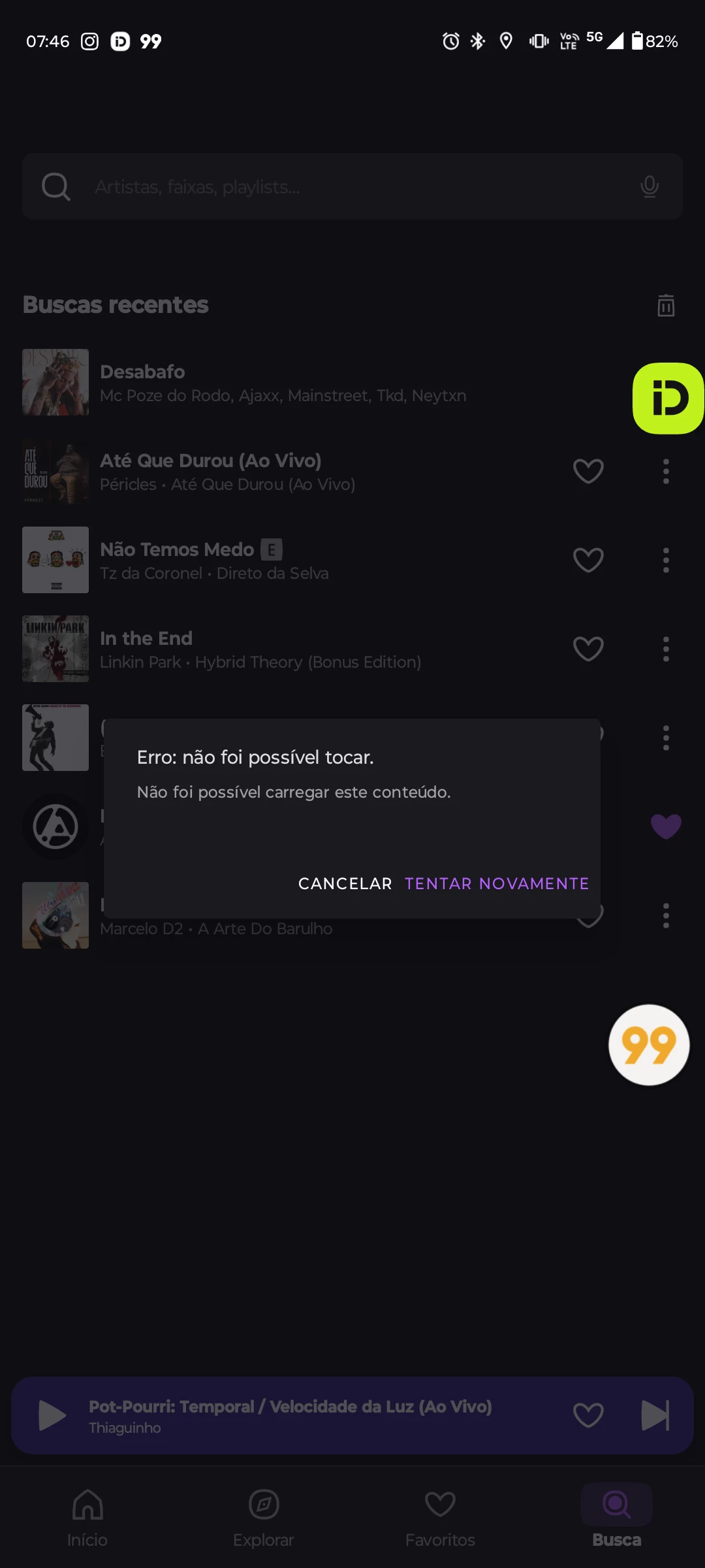 Simplesmente do nada, o app me da esse erro, e só toca depois que você aperta em "tentar novamente"