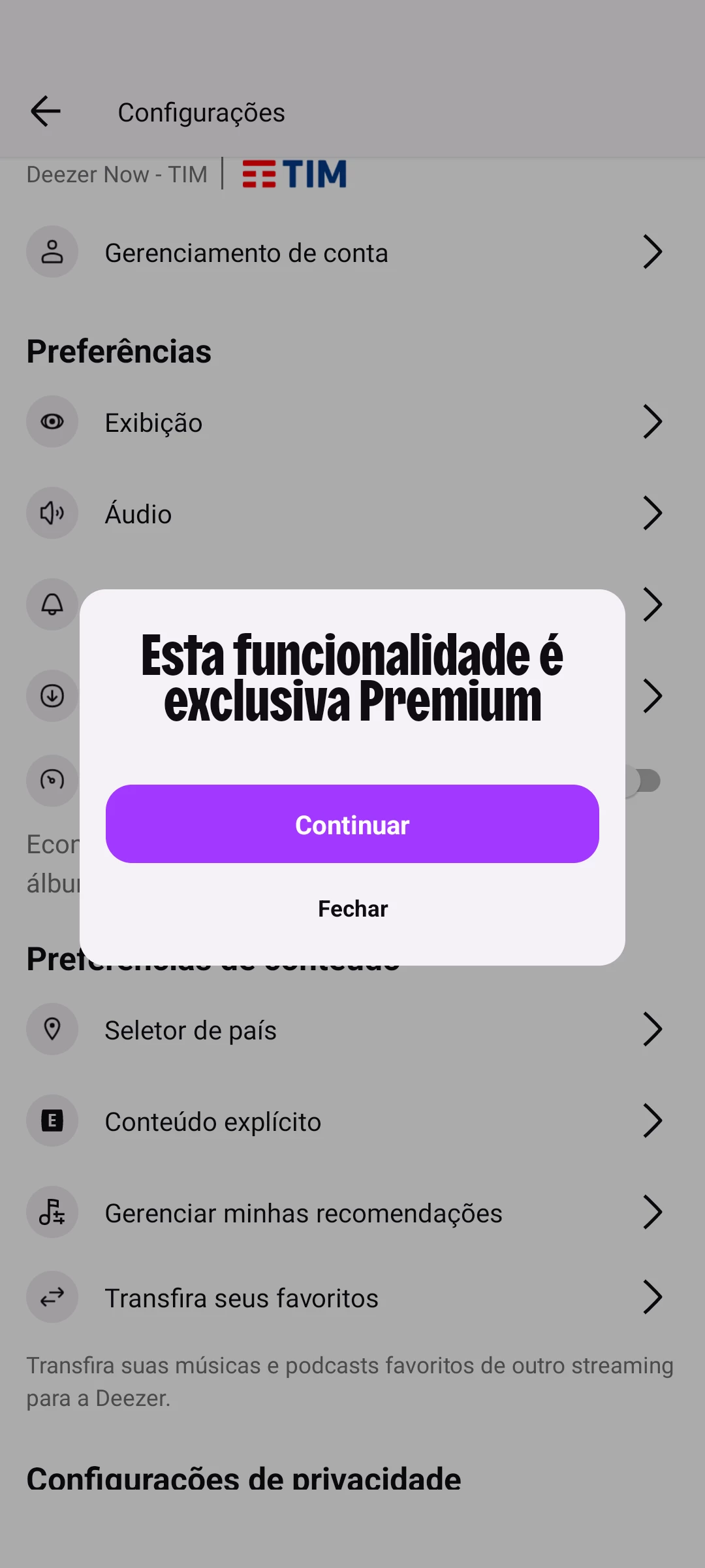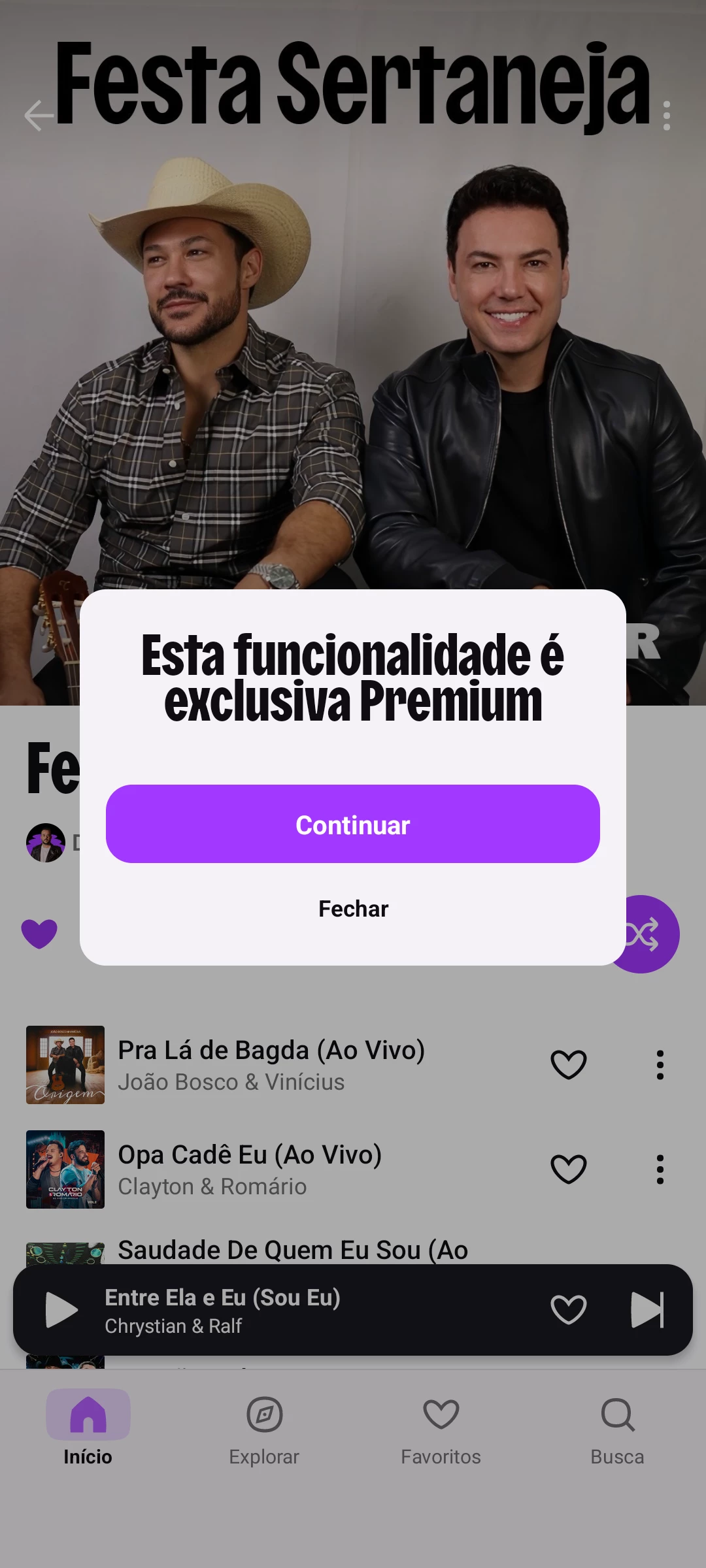 Não consiga fazer download de músicas, aparece mensagem que essa funcionalidade é exclusiva para Premium.